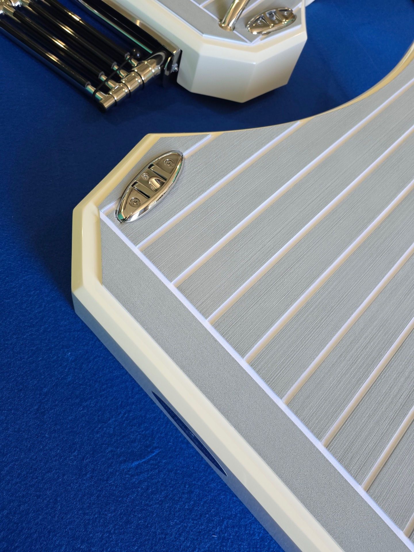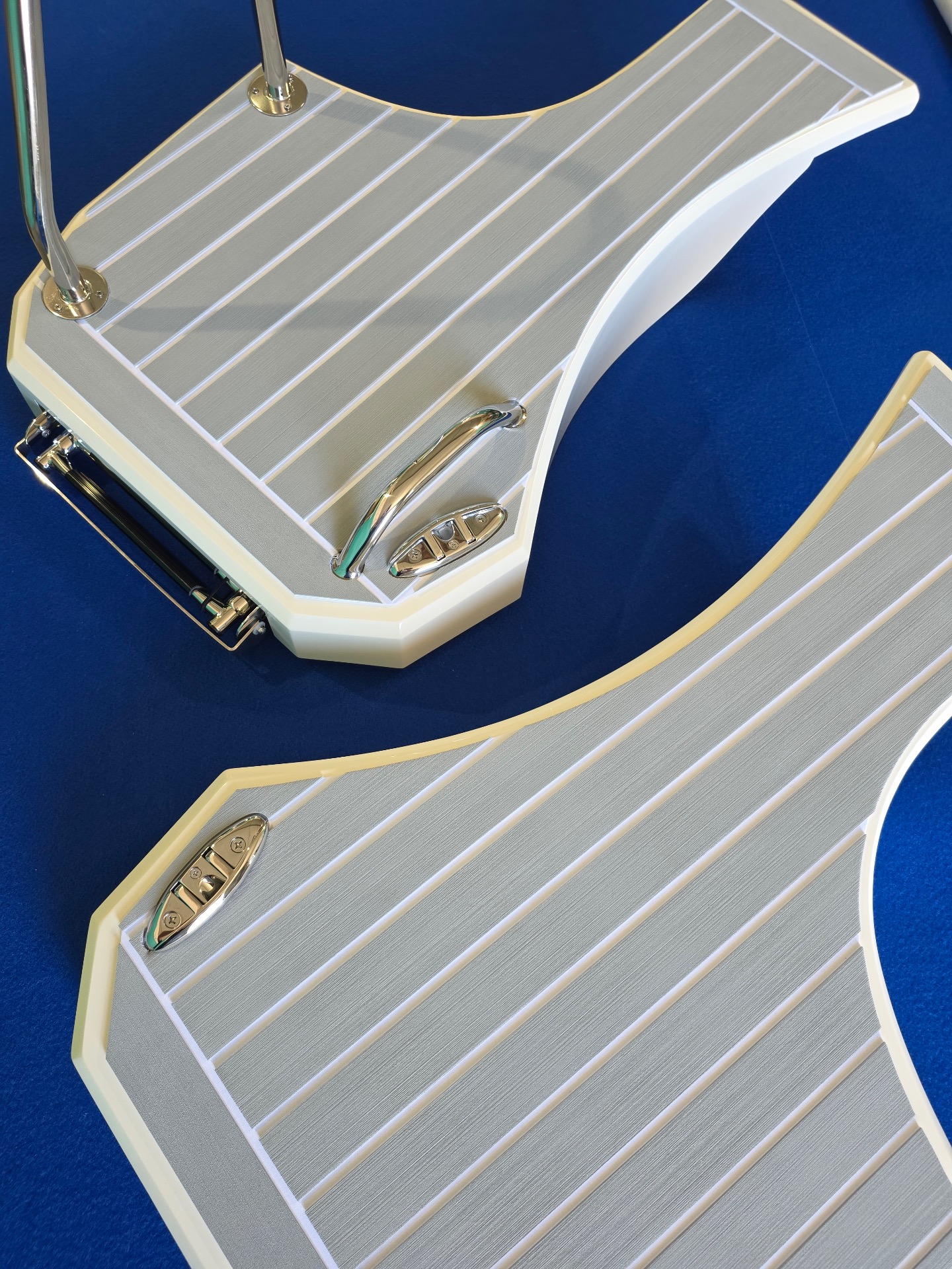 Puedes elegirlos con superficie lisa o antideslizante cortada con diamante en fibra de vidrio.(sin teca)