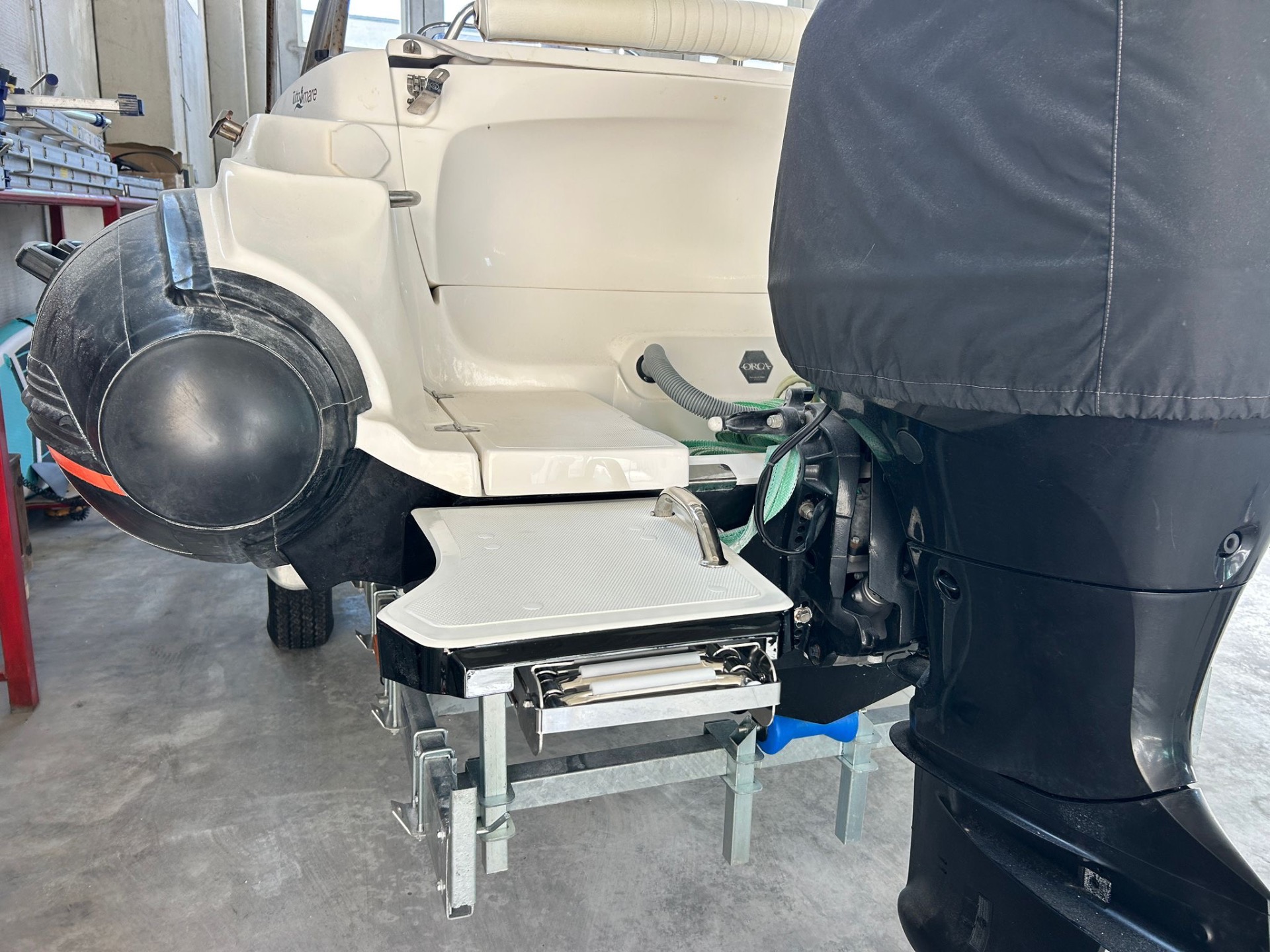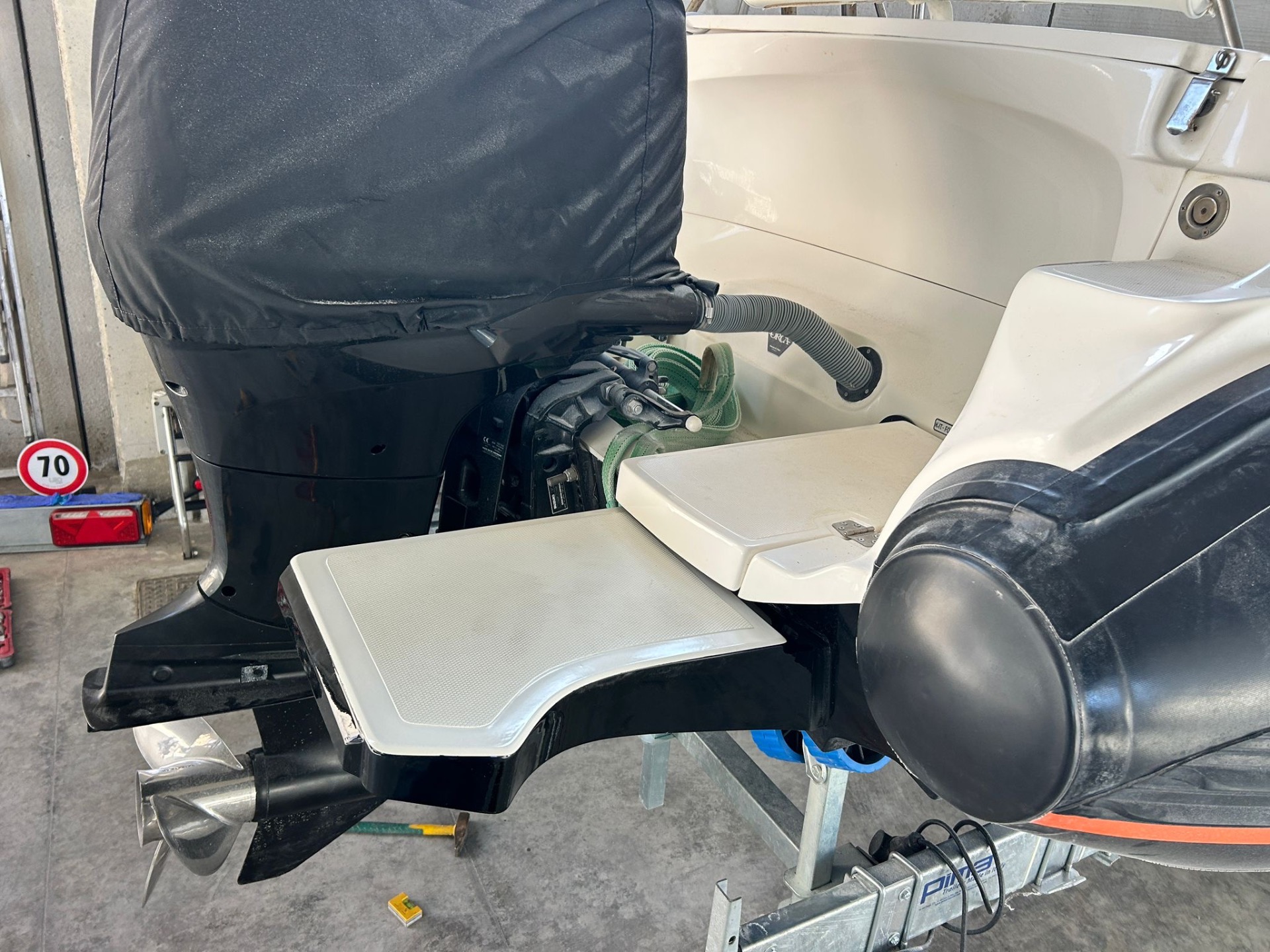 The Open Boat stern planks line also extends for application on inflatable boats, universal 38x56 cm completely in diamond anti-slip, very simple in shape and comfortable at the same time, equipped with a ladder with 3 steps to choose from in the variants.