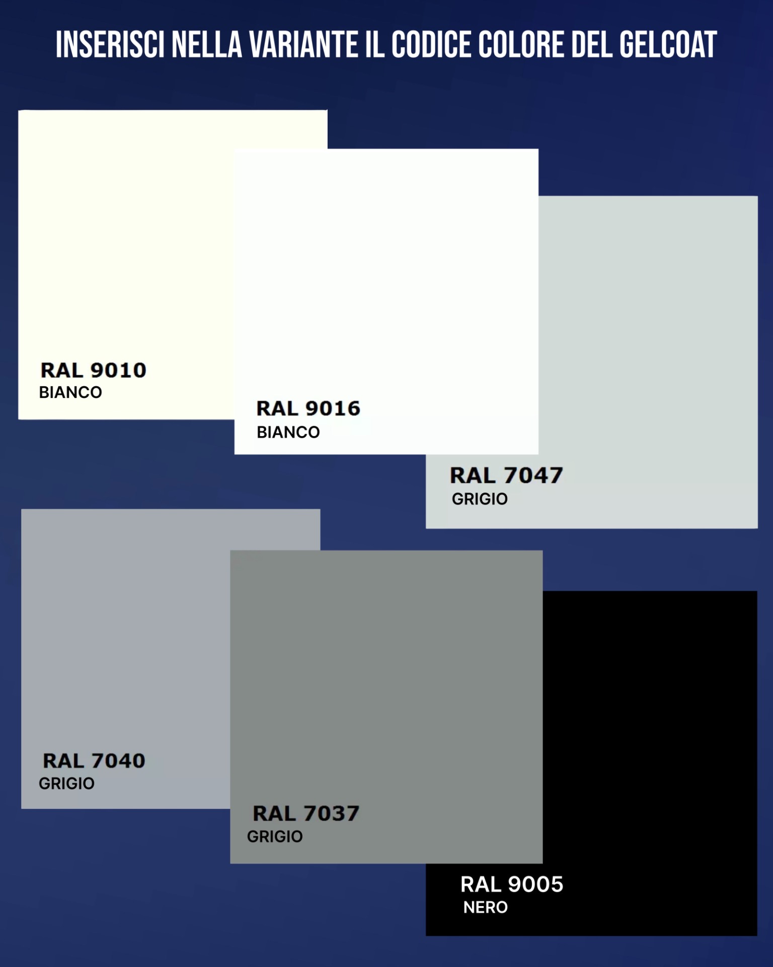 They are used as external reinforcement elements including the non-slip walking surface underneath, to reinforce structural parts, seats, locker covers, to cover any imperfections or fillings and to cover both designer interiors and external spaces. They can be installed with Sikaflex 591, epoxy resin or specific sealants in the naval sector. They are made of fiberglass and Gelcoat with a completely smooth and glossy surface of various thicknesses ranging from 2 mm in the semi-rigid version and 3 or 6 mm in the rigid version. The underlying part has the same color as the surface, so the difference will not be noticeable when cutting or on the edges. They are characterized by excellent chemical resistance and UV rays.