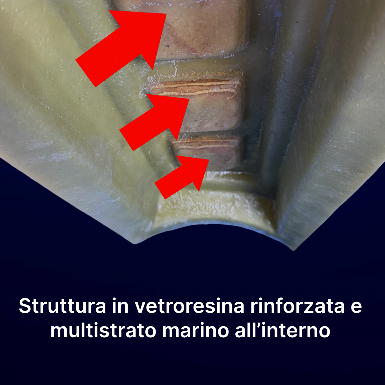 Materiale altamente resistente a salsedine, raggi UV e sollecitazioni marine.