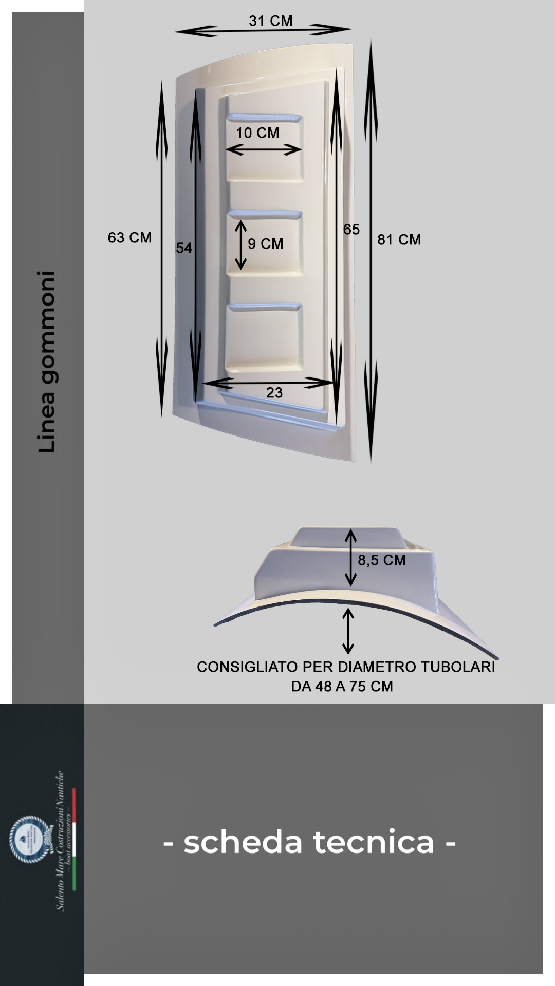 Applicabile su gommoni di diverse marche e dimensioni con tubi diametro da 48 a 75 cm (NON ADATTO A TENDER)
